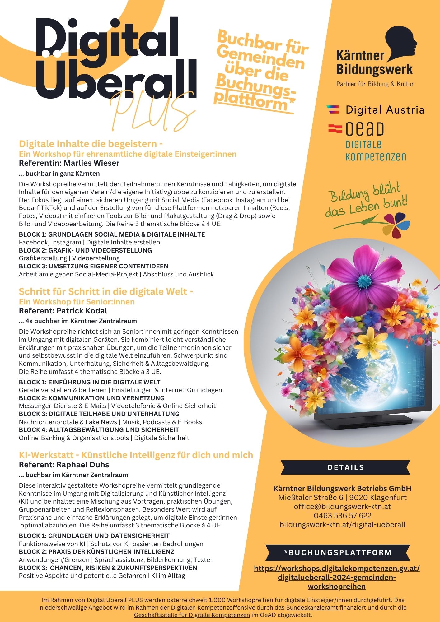 … 4x buchbar im Kärntner Zentralraum - KI-Werkstatt – Künstliche Intelligenz für dich und mich