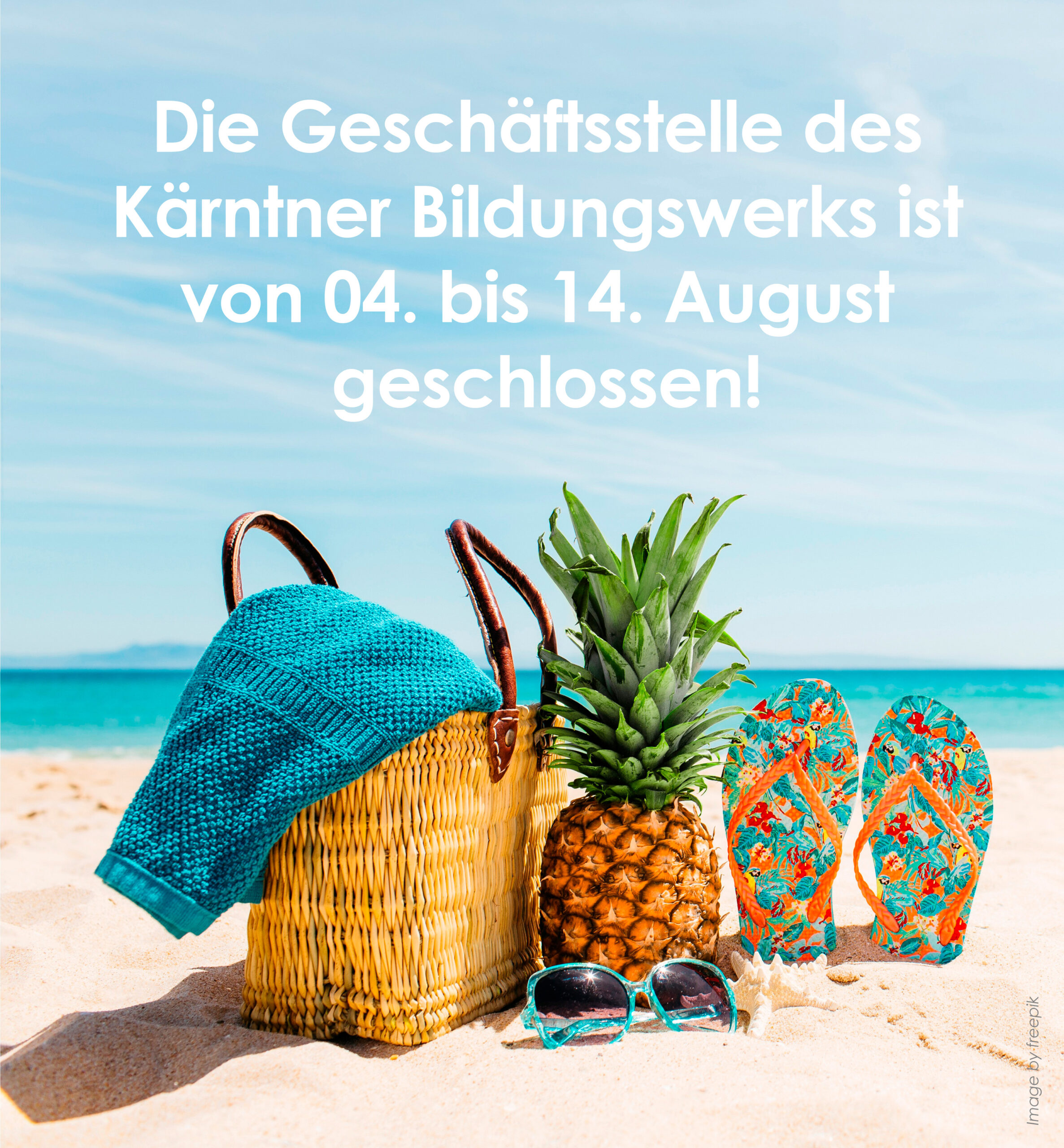 Die Geschäftsstelle des Kärntner Bildungswerks ist von 04. bis 14. August geschlossen! Auch der Newsletter macht im August Pause. Für den nächsten am 09. September senden Sie Ihre Beiträge gerne bereits jetzt an office@bildungswerk-ktn.at