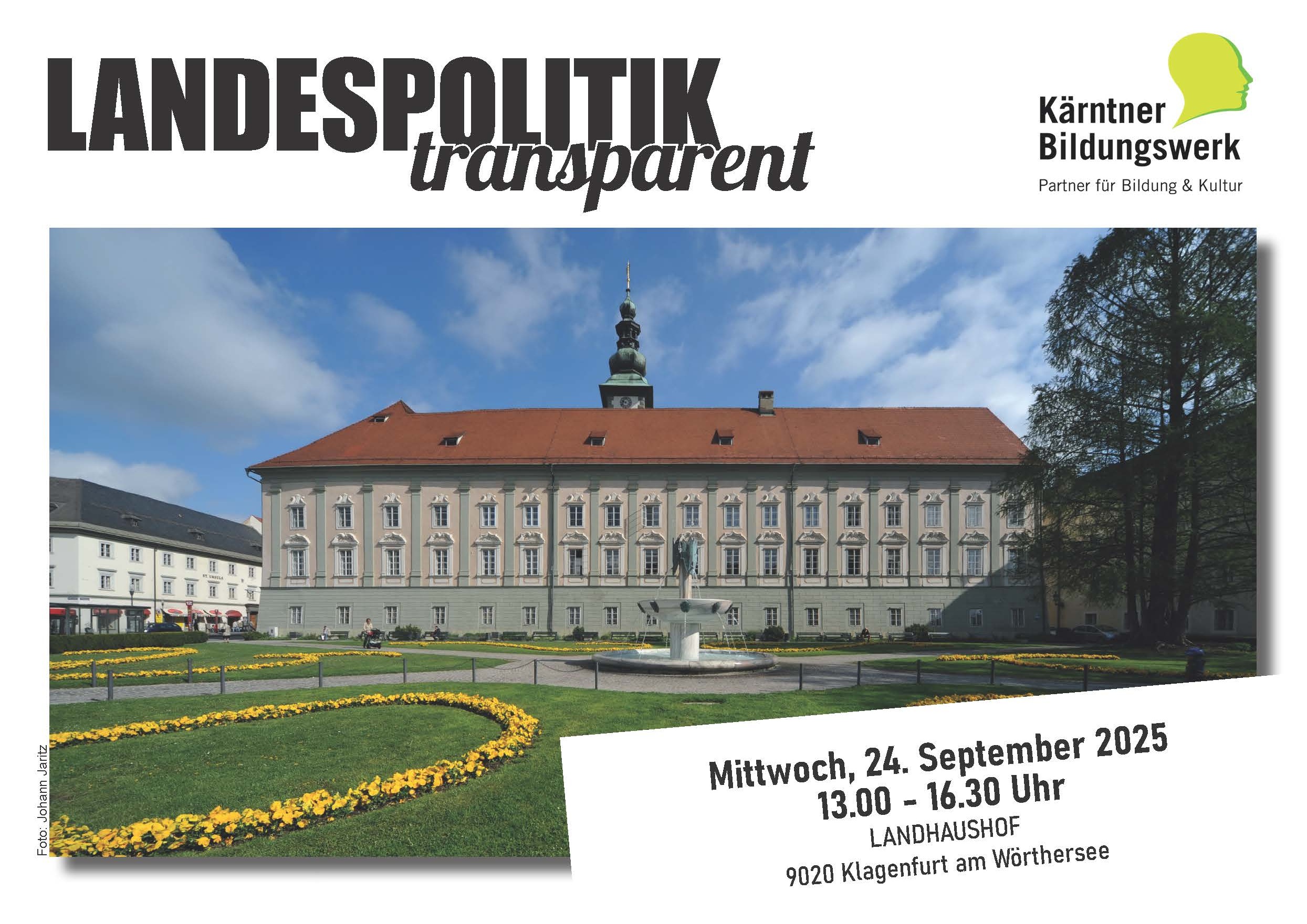 Erhalten Sie Einblick in die Arbeit des Kärntner Landtages & der Kärntner Landesregierung. Programmpunkte: (1) Vorträge und Diskussionen zu Aufgaben und Arbeitsweise des Kärntner Landtages und der Kärntner Landeregierung | (2) Führung im Tor zur Demokratie mit Lantagspräsident Ing. Reinhart Rohr, stellvertretendem Landesamtsdirektor DDr. Markus Matschek und stellvertretendem Landtagsdirektor Mag. Christian Burgstaller.